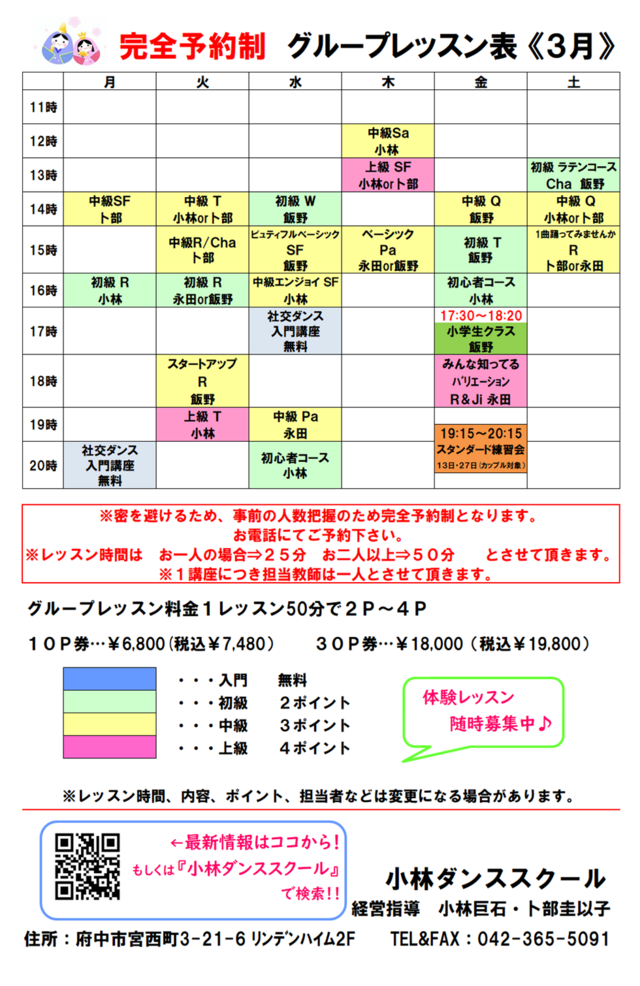 レッスンカレンダー